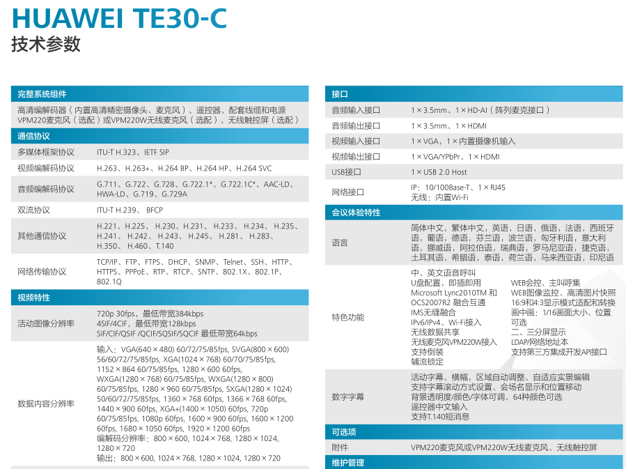 华为视讯高清终端TE30-C