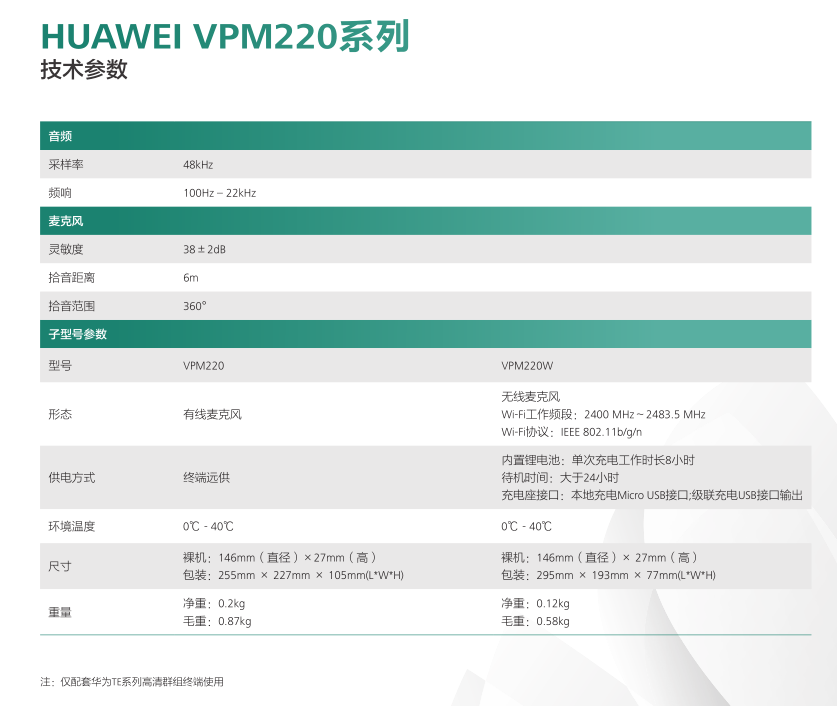 华为视讯阵列麦克风VPM220系列